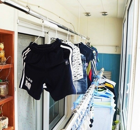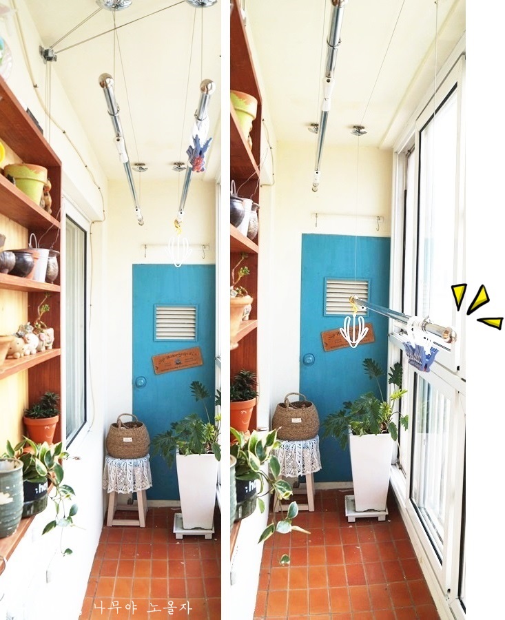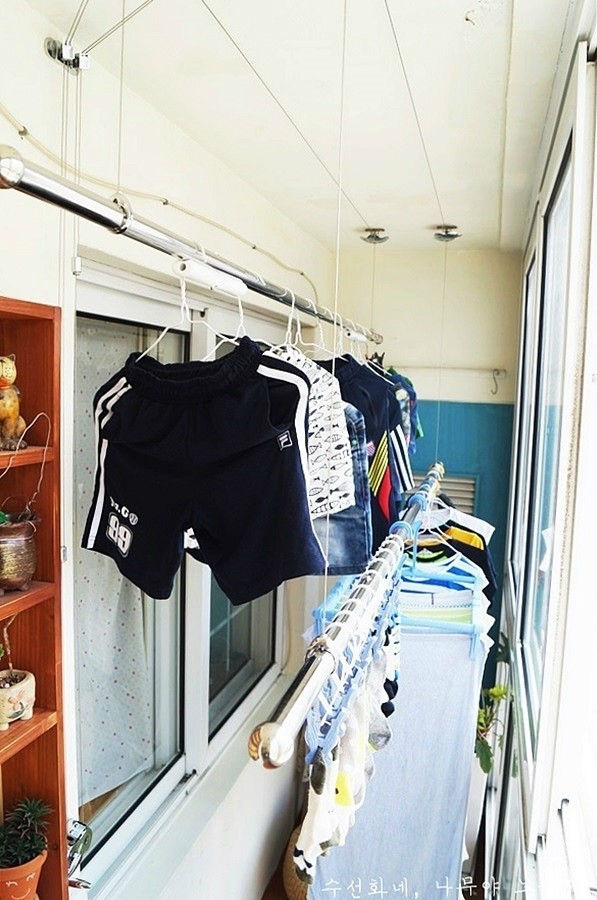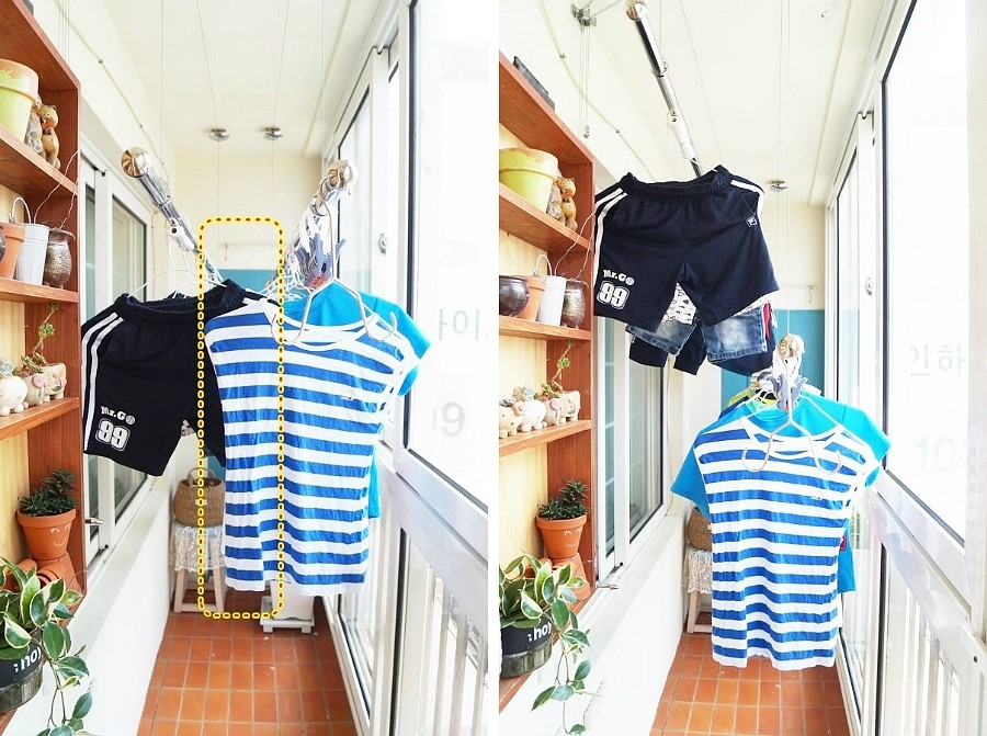 긴 빨래너르미 덕분에 이제 베란다 문을 열지 않아도 되니